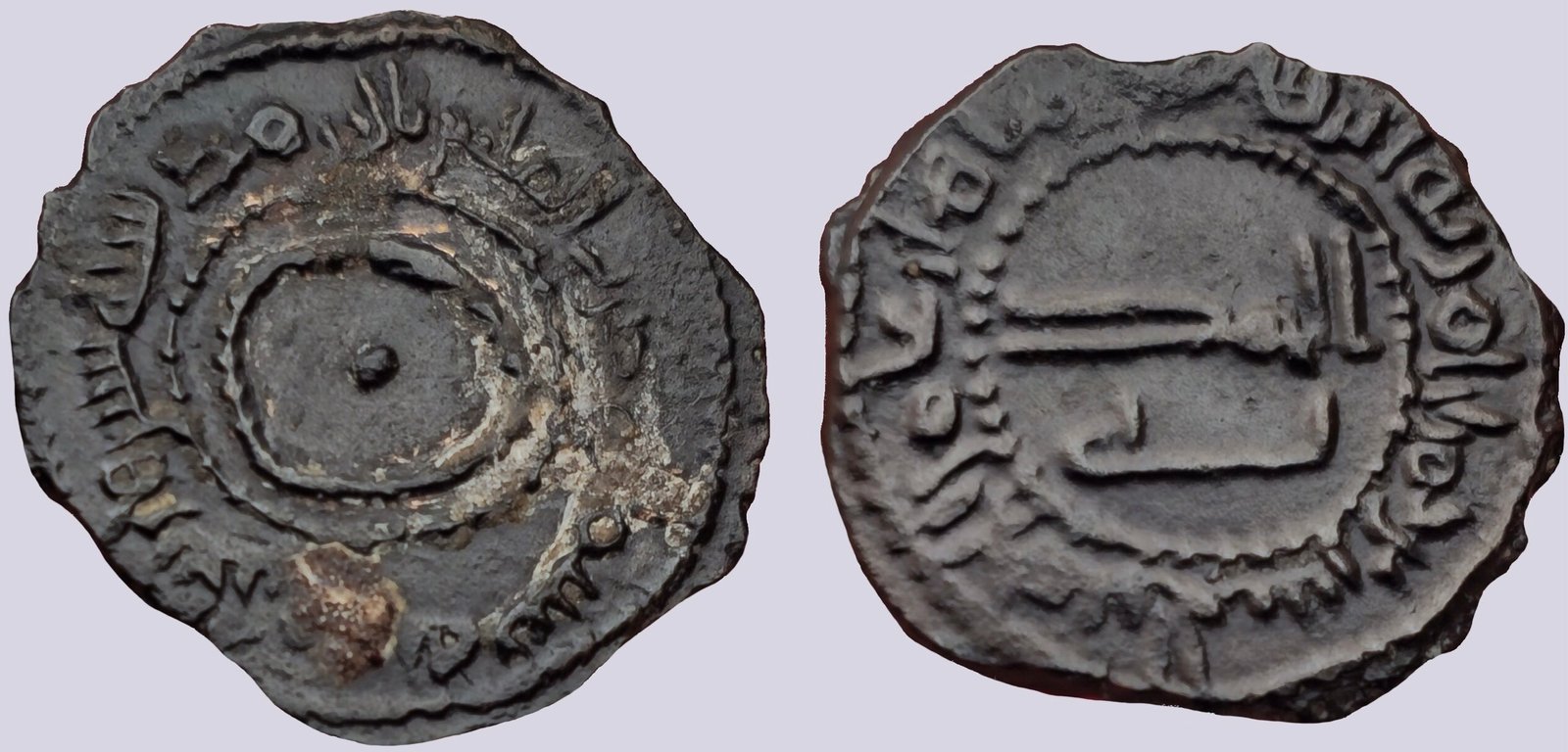 Struck early in the reign of al-Mansur, this attractive copper fals belongs to the small and geographically restricted series issued under the authority of al-Hasan ibn Hamran, governor of the important frontier district of Tirmidh (Termez). The type belongs to a transitional phase in Abbasid provincial coinage, still adhering to Umayyad epigraphic layout while showing clear standardization under early Abbasid administrative reforms