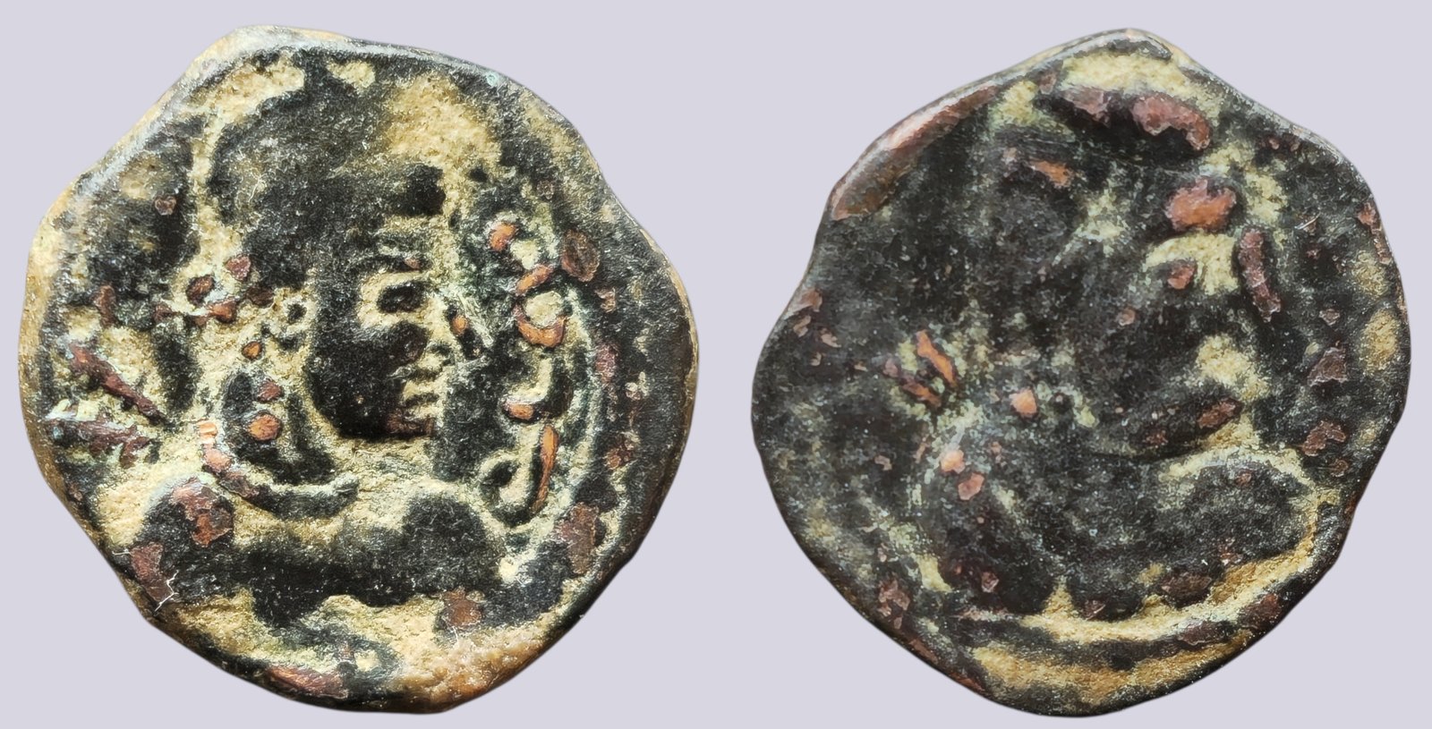 Tags: AE unit, Alchon Huns, Alkhan Huns, anonymous ruler, archaeological coin, bronze unit, Central Asia, early medieval coin, Gandhara region, Hephthalite period, Hunnic coinage, hunnic tribes, iranian huns, numismatics, rare ancient coin, Silk Road coinage, Tokharistan, uncertain king, vondrovec