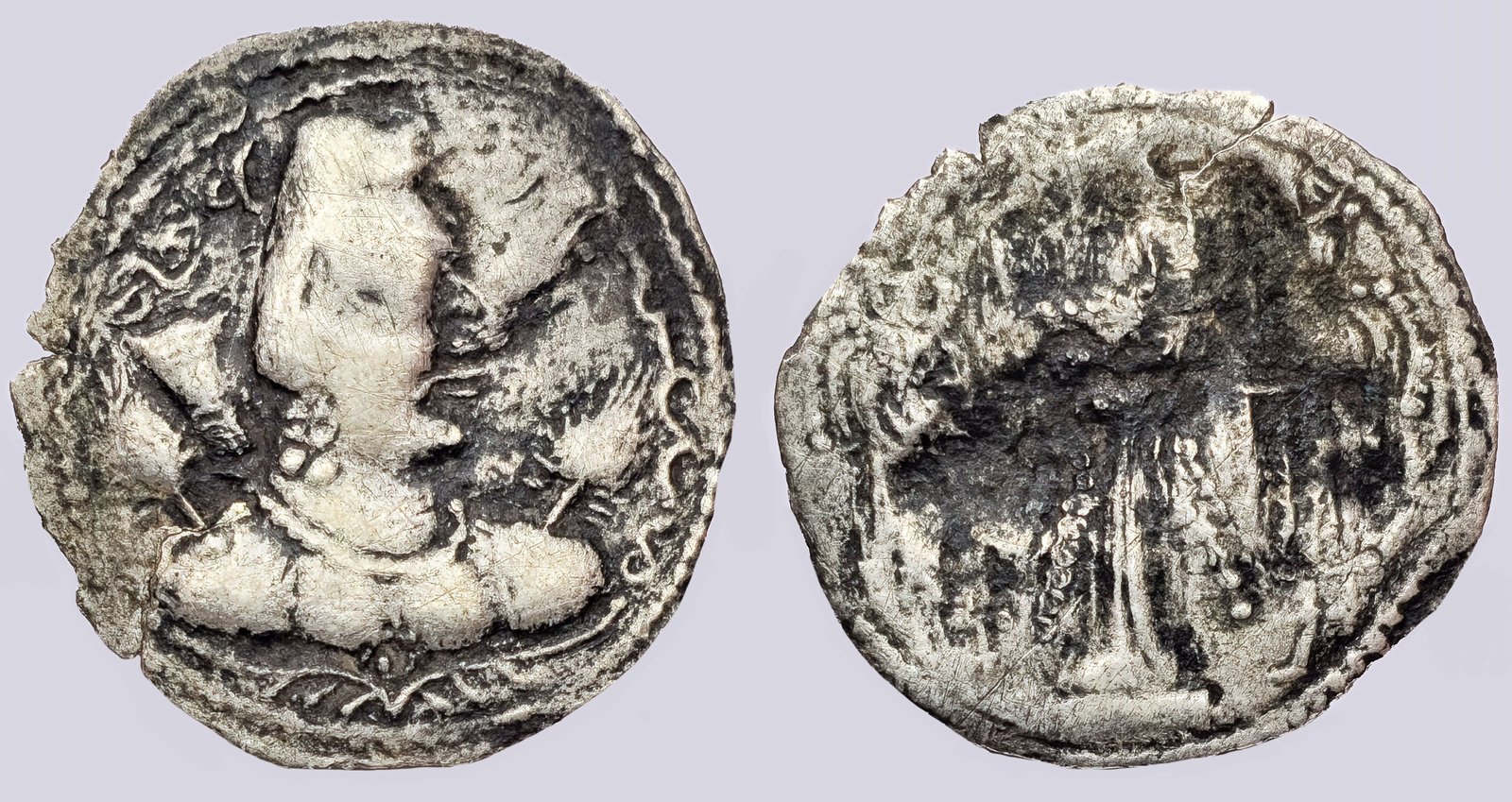 Tags: Alchon drachm, Alchon Huns, Alkhan Huns, AR drachm, Central Asia, early medieval coin, Gandhara region, Hephthalite period, Hunnic coinage, iranian huns, Khingila, King Khingila, Silk Road, Silver drachm, Tokharistan, Type 60