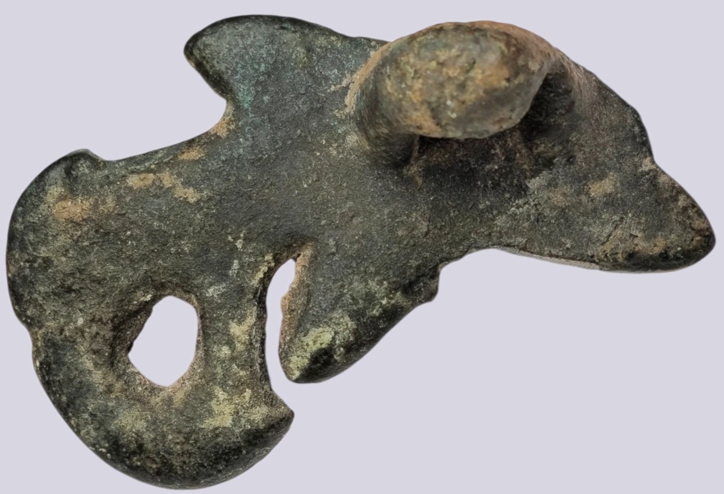 Such zoomorphic bronze seals were used in administrative or commercial contexts, likely for marking goods, storage containers, or textile packages. The dolphin or fish motif may have held apotropaic or symbolic meaning, possibly associated with water, fertility, or trade.
