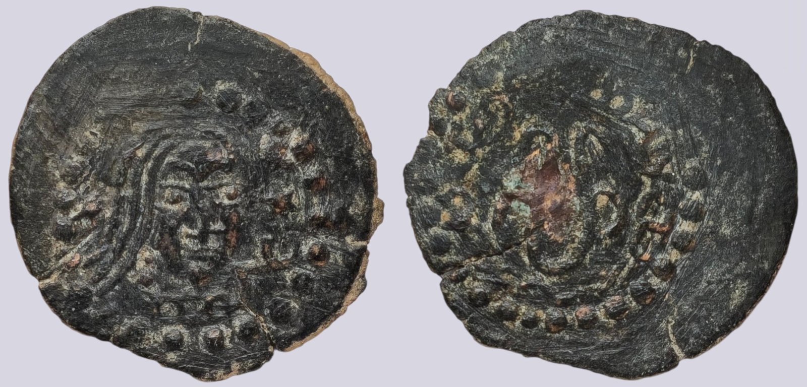 Tags: AE unit, archaeological coin, bronze coin, Central Asia coin, Chach, early medieval coin, historical Central Asian coin, Kanka city, local city coinage, numismatics, rare ancient coin, regional authority issue, Silk Road coinage, Soghdian influence, Turkic period, urban mint