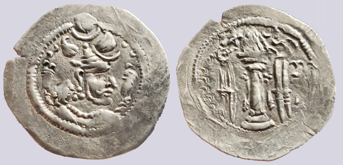 OBVERSE: draped bust of ruler to right, wearing Peroz’s second crown