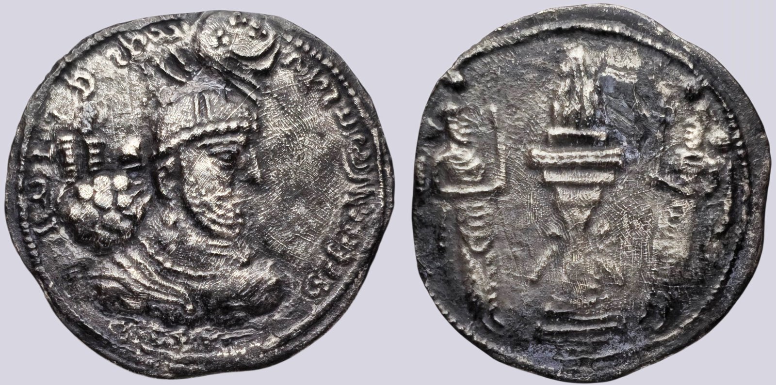 Tags: 5th century AD, ancient Persian coin, AR drachm, archaeological coin, Ardashir II, Ardeshir II, Central Asian history, Iranian coinage, numismatics, pre-Islamic Iran, rare ancient coin, Sasanian coinage, Sasanian Empire, sasanians, Silver drachm