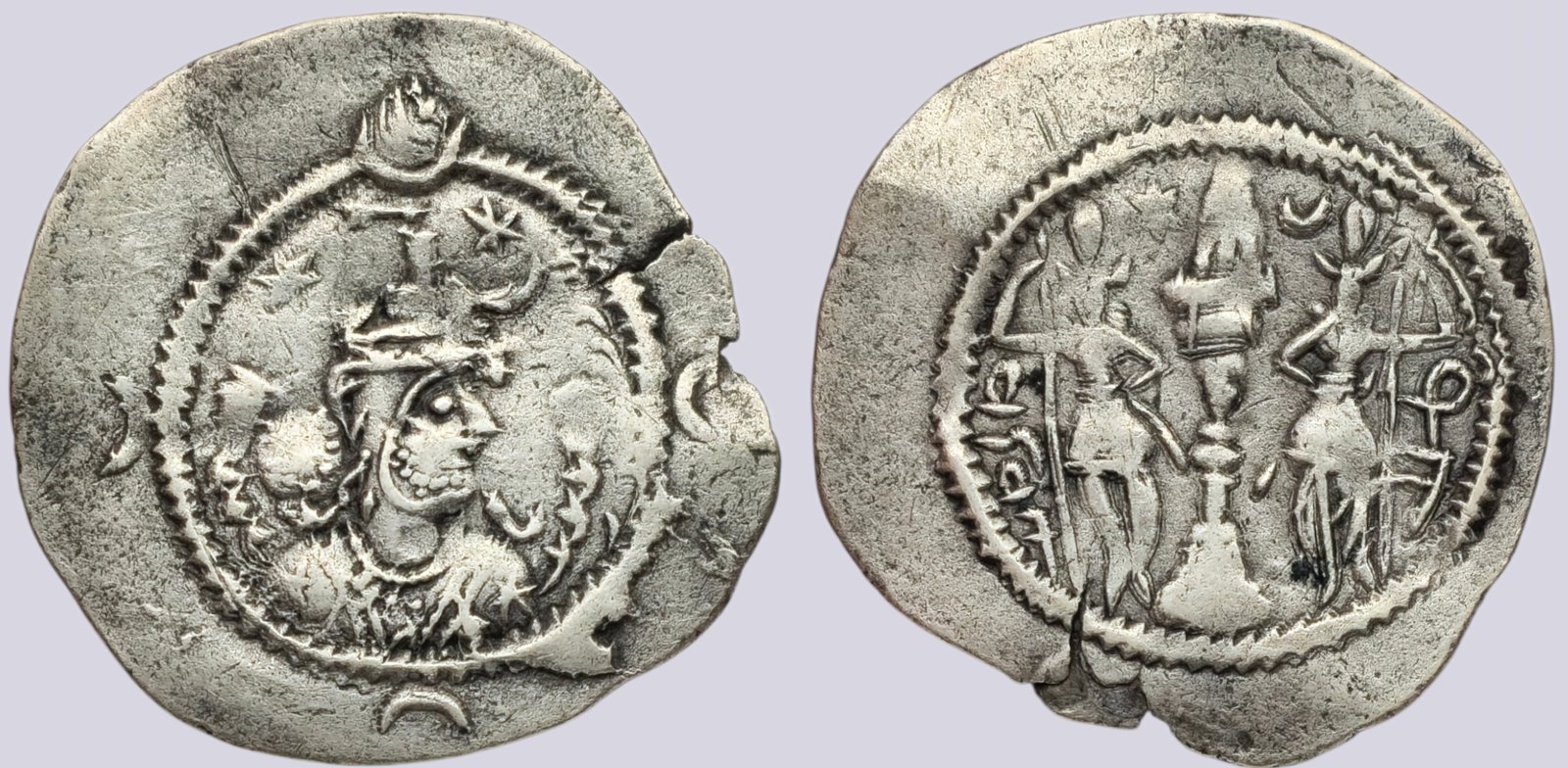 OBVERSE: Draped bust of Khusru facing right