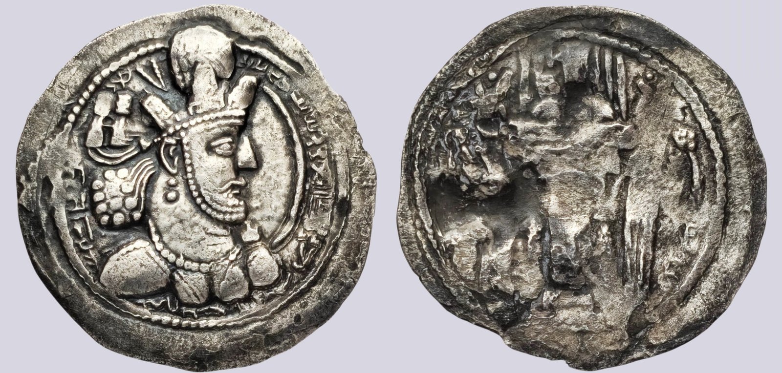 Tags: 4th century AD, ancient Persian coin, AR drachm, archaeological coin, Central Asian history, Gandhara, Harev region, Iranian coinage, numismatics, pre-Islamic Iran, rare ancient coin, Sasanian Empire, sasanians, Shapur II, Shapur II drachm, Silver drachm
