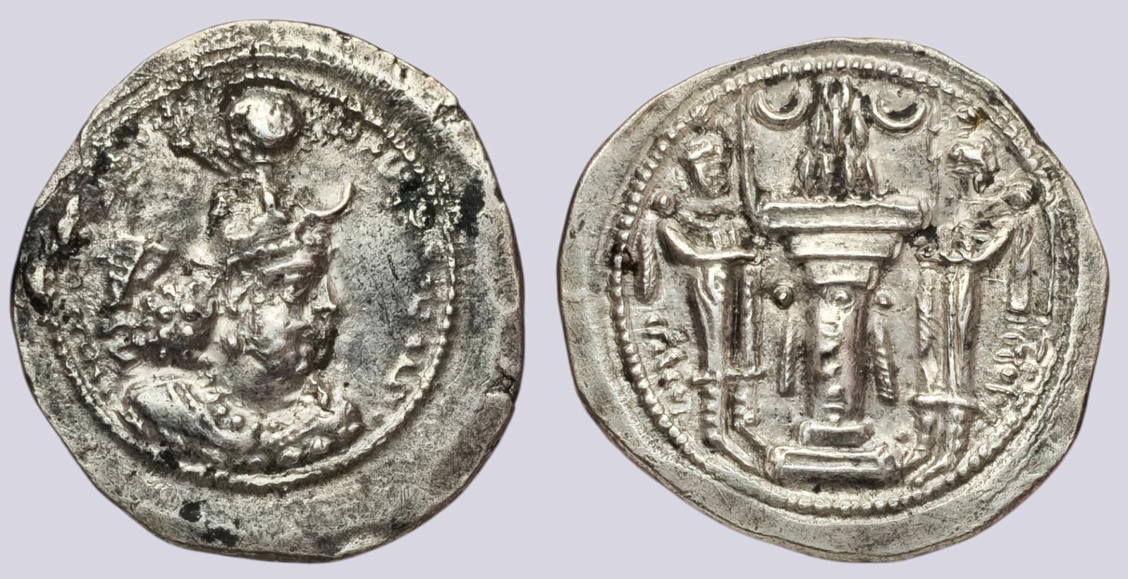 Tags: 5th century coin, ancient coin, AR drachm, archaeological coin, Central asian coin, Iranian coinage, late antique coin, numismatics, Persian Empire, pre-Islamic coin, Sasanian coinage, Sasanian Empire, sasanians, Silk Road coinage, Silver drachm, Yazdegird I, Yazdgird I, Zoroastrian coinage