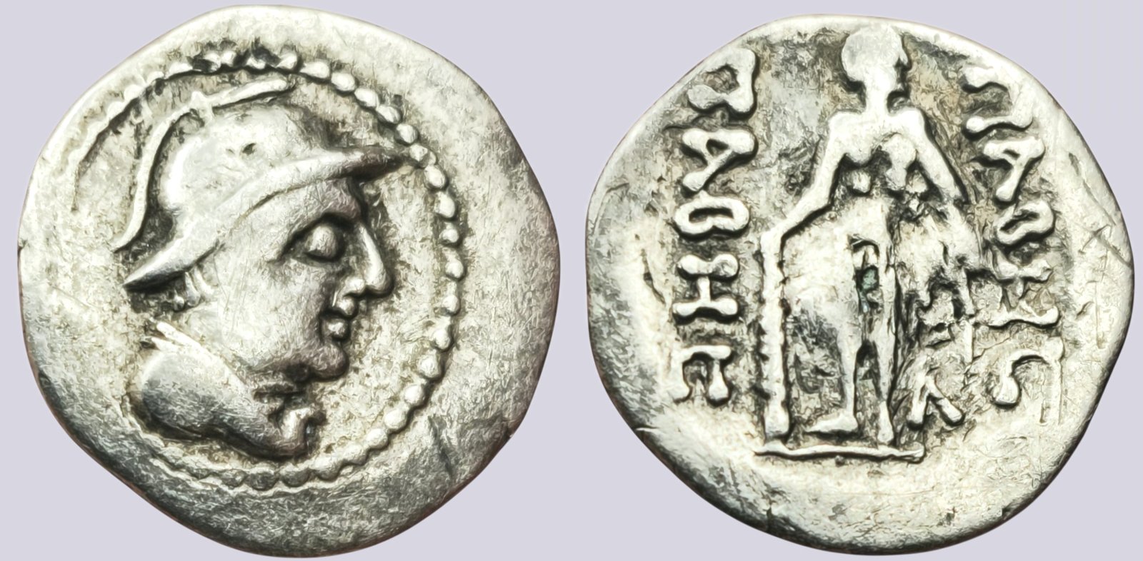 OBVERSE: helmeted bust right of Indo-Greek style