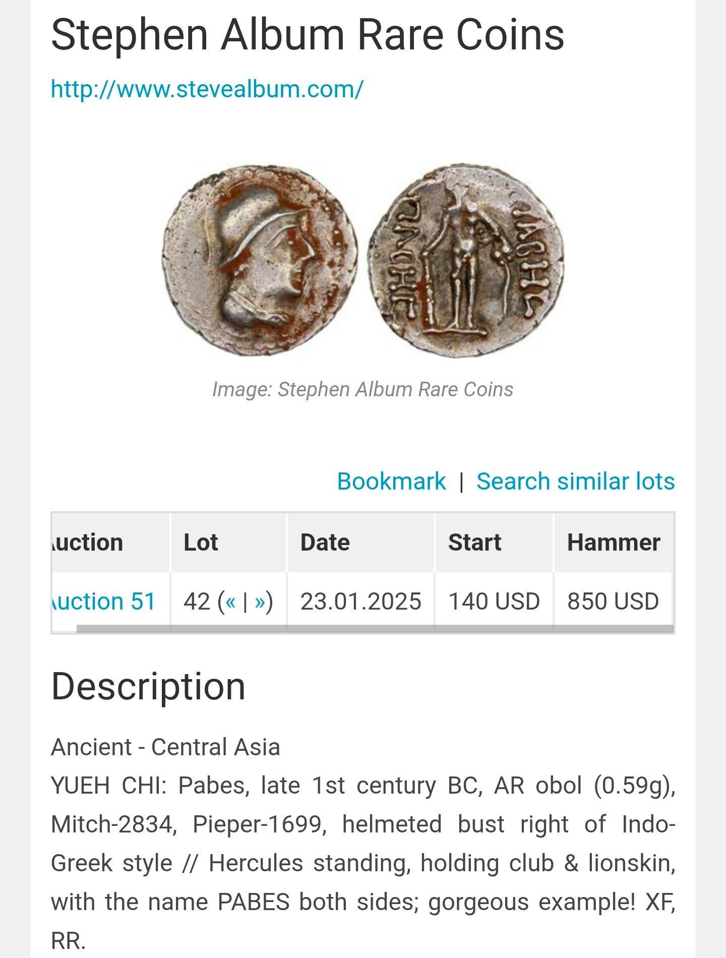 Early YüehChi/Kushans in Bactria. Pabes (late 1st cent. BC)